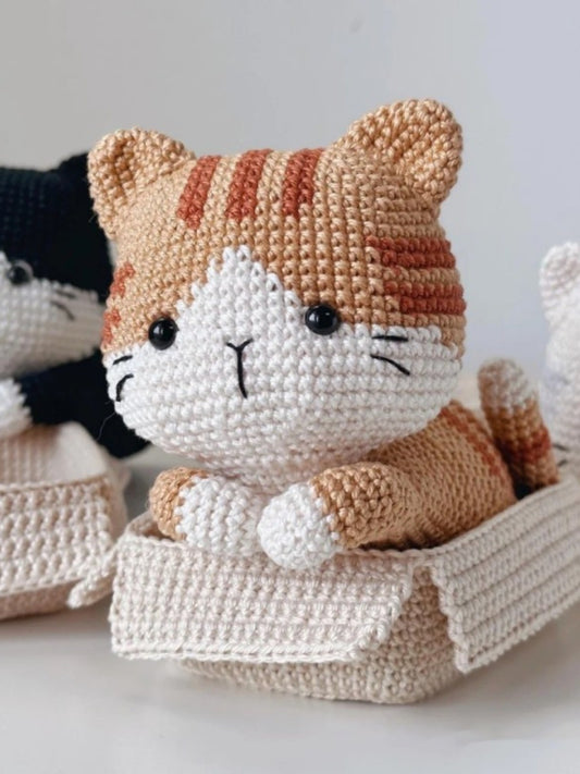 Cat in Box Crochet Material Kit with Tools and Tutorial Included