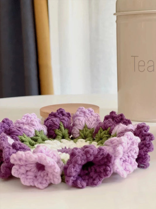 Crochet Material Kit for Purple Flower Knitted Coaster with Tools Included