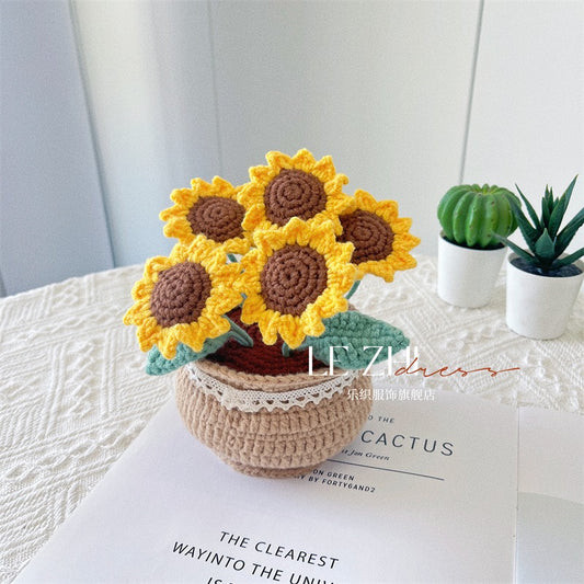 Sunflower Potted Plant Crochet Material Kit with Tools and Tutorial Included